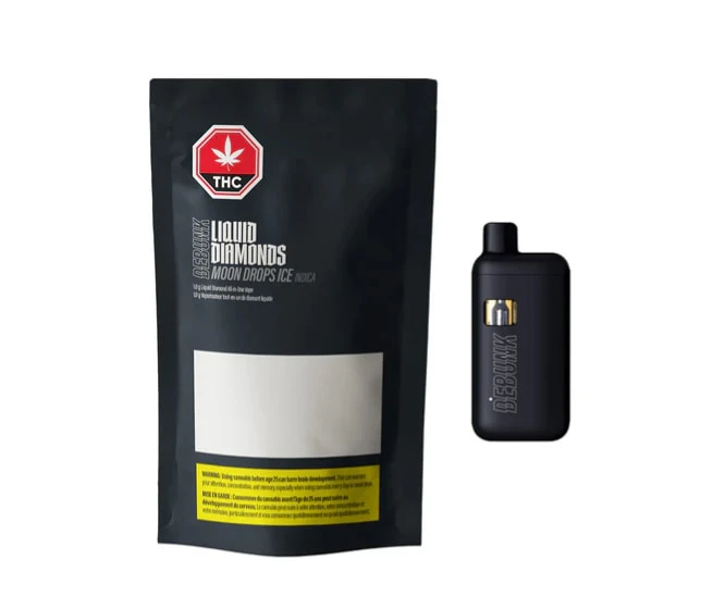 DEBUNK Moon Drops Ice All-in-One Vape is indica-dominant with lychee, pear, citrus, and berries. Hydrocarbon process turns THCA diamonds into THC liquid diamond isolate, enhanced with botanical terpenes. Housed in USB-C rechargeable hardware with a wide-mouth airflow to reduce clogging.