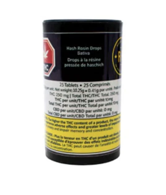 Hash Rosin Drops Sativa are solventless, strain specific, and high dosage. 10mg x 25-piece format is ideal for daily usage. Vegan and gelatin-free with no sugar, or sugar substitutes, and a clean ingredient list.