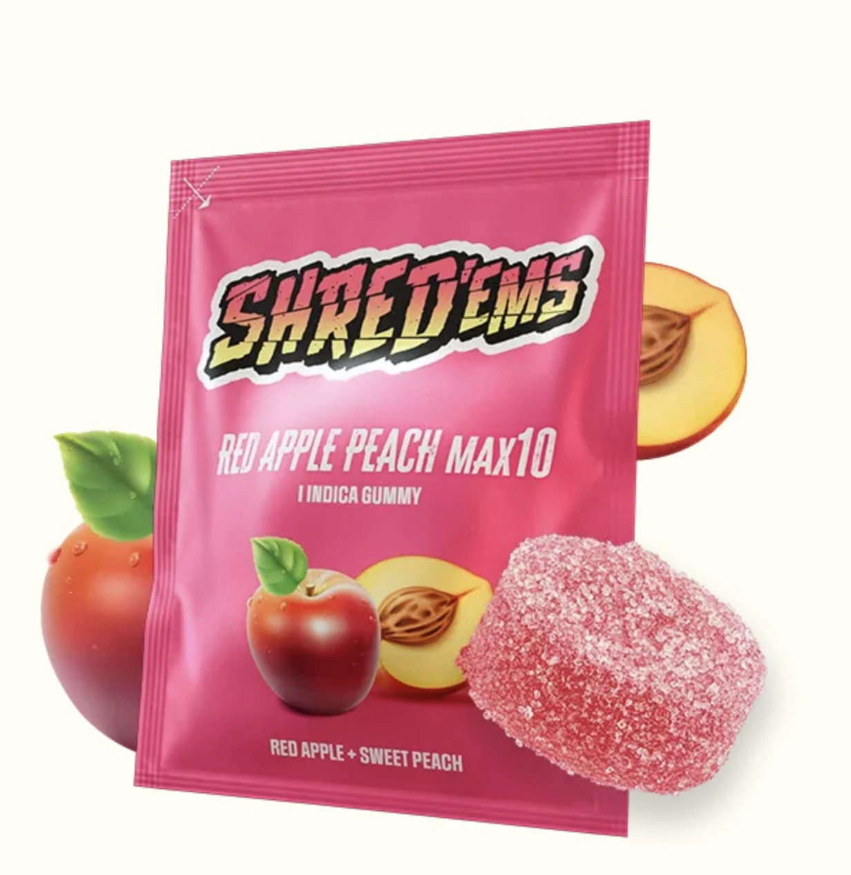 Looking for a sweet escape? SHRED'ems Red Apple Peach has you covered! This juicy indica gummy blends the crisp sweetness of red apple with the smooth, mellow flavour of ripe peach. With 10 mg THC packed into just one MAX10 gummy, it’s the perfect treat for when you want to kick back and chill. Maximum flavour, maximum relaxation—your perfect wind-down companion in a single bite
