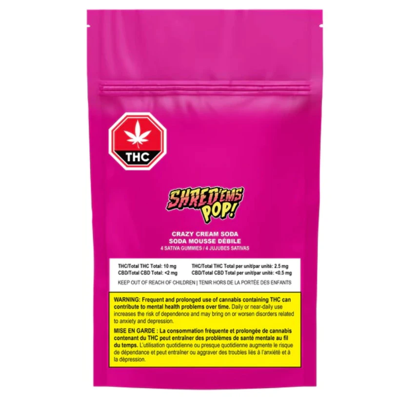SHRED’ems POP! Crazy Cream Soda gummies are packed full of a classic soda pop flavour, with notes of cotton candy, vanilla and even a dash of crazy coconut. The entire lineup of SHRED’ems gummies are vegan and made with all-natural flavours. Each pack contains 4 squishable gummies each with 2.5mg THC.