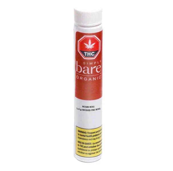 Simply Bare's Organic Rosin Roll is here. A single-strain flower and hash rosin combo packed perfectly into a one-gram pre-roll. This high potency infused pre-roll boasts intense flavours. Both the flower and rosin are from the same FVOPA Certified Organic strain, resulting in an extremely terp forward pre-roll. This rosin roll starts with our sun-grown flower, hand-trimmed, milled then mixed carefully with our organic hash rosin and finished off in organic hemp paper.